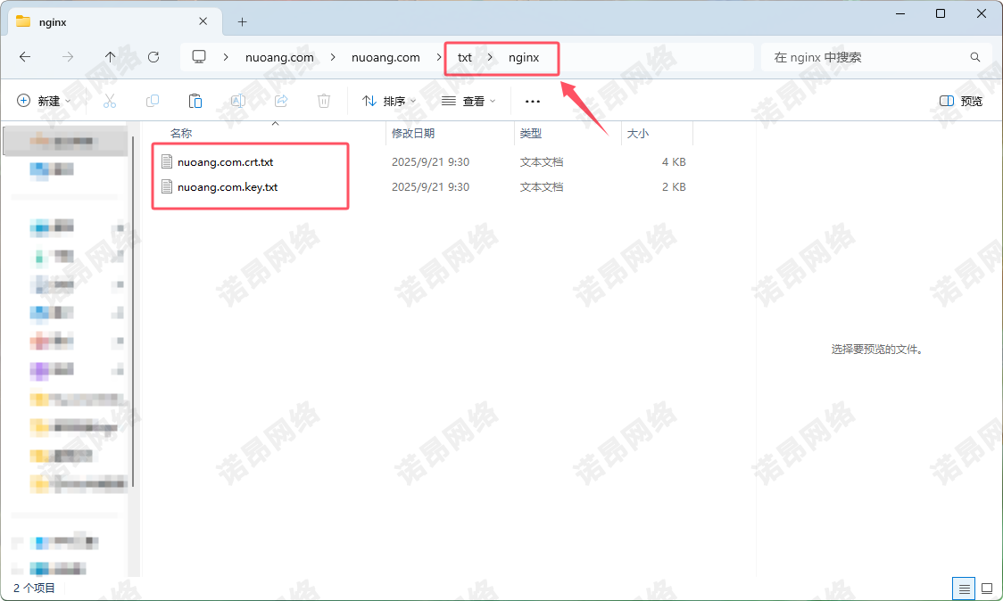 • ​私钥文件​​(如:nuoang.com.key.txt